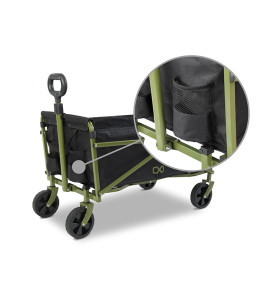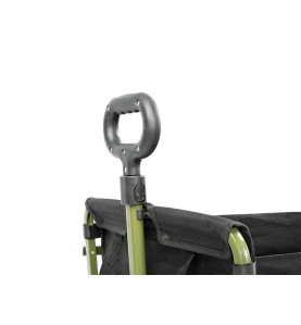 Osim toga, ispred se nalaze dva držača koja možete koristiti za boce ili drugu opremu. Petlja postavljena na dnu prostora za pohranu olakšava sklapanje. Za jednostavan transport sklopljenih kolica, tu su rukohvati s obje strane. Ovi parametri, uz cijenu, čine ga jednim od najboljih kolica u ovoj cjenovnoj kategoriji.