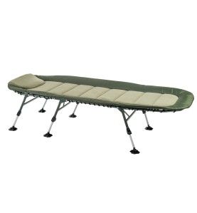 A large, flat and absolutely comfortable bedchair. Soft pillow and well padded mattress with warm fleece cover provide great comfort even on longer sessions. The edges of the mattress are covered with a strong and washable material B-POL 600D which is almost indestructible and ensures a long service life. The legs are fitted with large swinging mud feet in an exclusive Mivardi design. The uniquely designed leg locks provide fast and convenient one-touch leg adjustment and maximum reliability. A very strong frame allows perfect tensioning of the mattress. The bedchair Comfort is available in a six or eight leg versions.