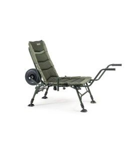 This innovative and multi functional chair with a long backrest and innovative system of holders for various accessories has been designed by Mivardi from the ground upwards. The optional adaptors for accessories can be fixed in 8 holders placed around the chair frame. Four telescopic legs are fited with large oversized mud feet. Within a few seconds this chair can be tranformed into a heavy duty trolley with an inflatable wheel and two comfortable handles. A cover to protect the mattress and one adaptor for accessories are supplied with the chair. The chair / trolley have a load capacity of 150 kg.
