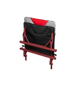 RaceBase is a premium feeder chair that will attract the attention of demanding fans of this fishing technique. The basis of the chair is an extra strong iron construction, with a burgundy finish, characteristic for the products from the ATOMA series. Due to its design and the material used, it will not have a problem even with heavier weight categories of fishermen. The seat and back part is sewn from a very durable fabric and carries several interesting ergonomic and design elements. The soft padding guarantees that you will feel as comfortable as possible even during a longer fishing or feeder race. The individual legs of the chair are inserted from the side into the tubes with a square profile, thanks to which any overturning is prevented. In addition, they are tightened by a screw mechanism obliquely to the edge of the profile, which prevents damage and deformation of the individual pipes. The front pair of legs, compared to the back, has significantly elongated top tubes. This solution is not common, but it is an absolutely functional detail. Thanks to the longer leg, you can place more elements on this profile, and such design gives the chair much greater variability. You will have everything at hand at the same time. All four legs are extendable and are also equipped with high-quality articulated heels made of solid plastic. Thanks to this, the chair will be able to be spread out even in uneven terrain. In addition, the heels prevent the chair from sinking into the ground, in the case of a softer surface. When designing, we also thought about the stability of the chair, and therefore we added a locking mechanism to the front pair of legs, which prevents the chair from tilting and subsequently overturning when using large and heavier feeder arms. Maximum comfort, elaborate and extra stable - this is the Delphin ATOMA RaceBase chair!