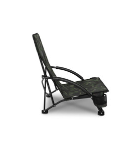 Iako ima nisku konstrukciju, LOWRIDE iznenađuje udobnošću zahvaljujući mekano podstavljenim rukonaslonima i mrežastom naslonu koji osigurava protok zraka čak i tijekom dugog sjedenja. Sjedalo je izrađeno od izdržljive 600D tkanine s jedinstvenim BANX kamuflažnim uzorkom, koji predstavlja mapu najpoznatijih europskih ribolovnih voda – od obala Rumunjske pa sve do Španjolske.